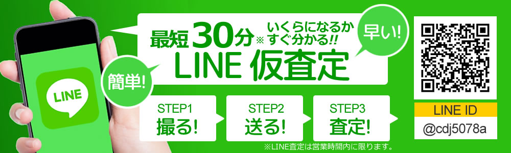 - 営業時間内であれば、最短30分以内、遅くても24時間以内に仮査定価格をご連絡いたします。