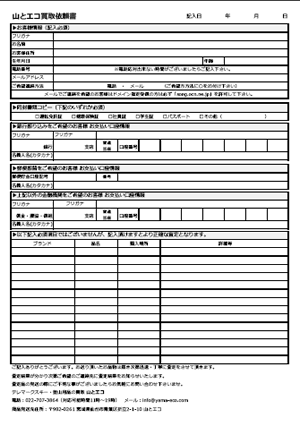 買取依頼書がプリントアウト出来ない方はメモ書きで構いませんので「お振込先銀行・口座番号」・「ご連絡先」・「身分証コピー」をご同封下さい
